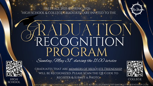 For any questions, please contact Sis. Valerie Nelson at collegeministry@mesquitefriendship.com